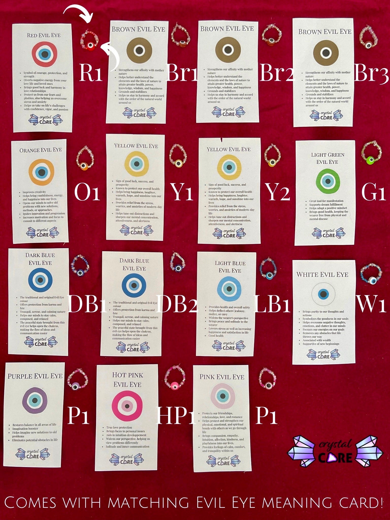 The Evil Eye dates back to about 5,000 years and is believed in many cultures. This traditional symbol is known to protect one from malicious glares, often given from others when not aware. It is said to guard off negativity, jealousy and bad health. Not only does it repel the bad, but the Evil Eye also attracts the good. Based on its colour, the Evil Eye offers a great number of benefits.